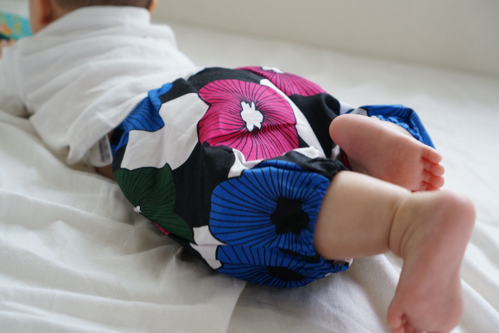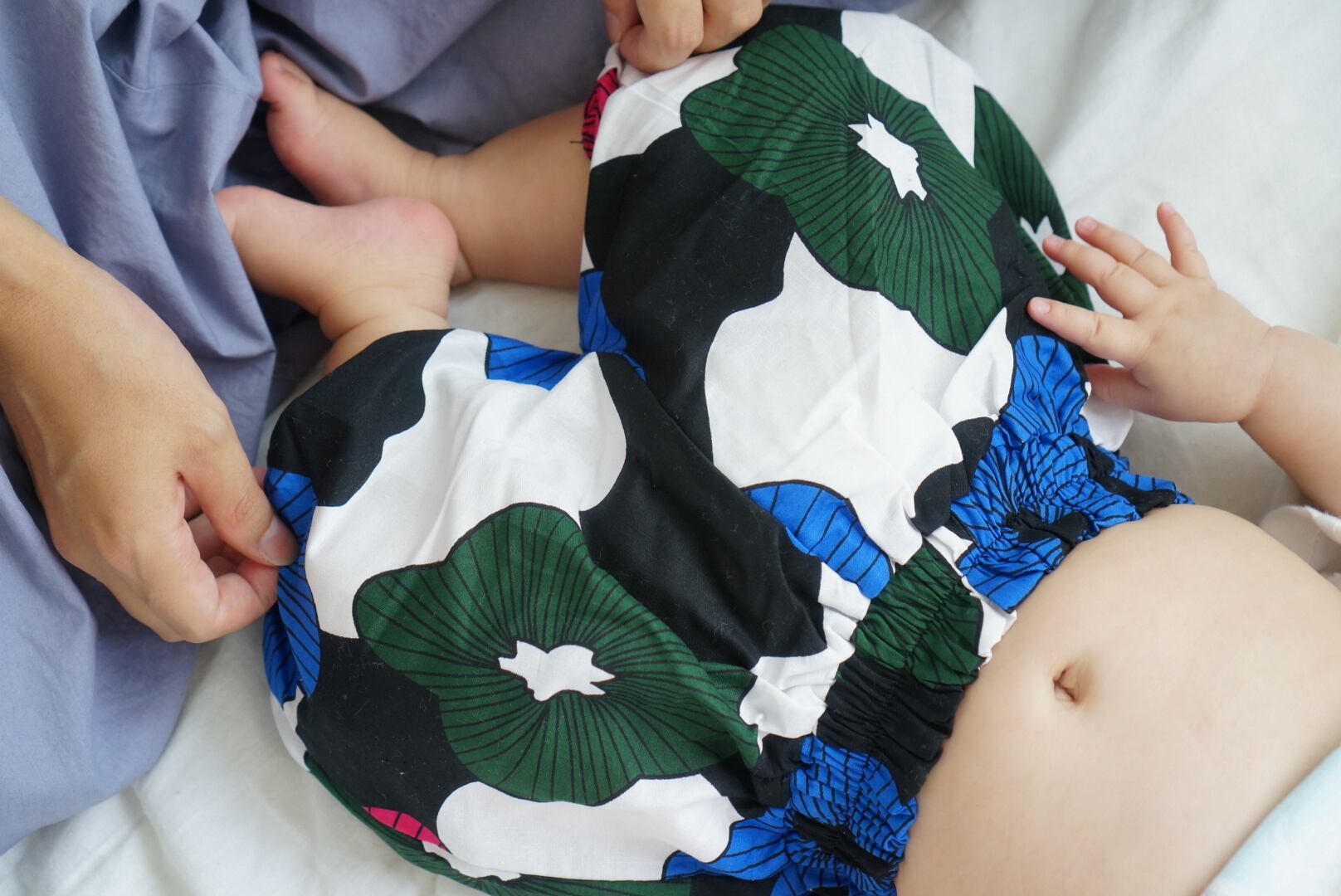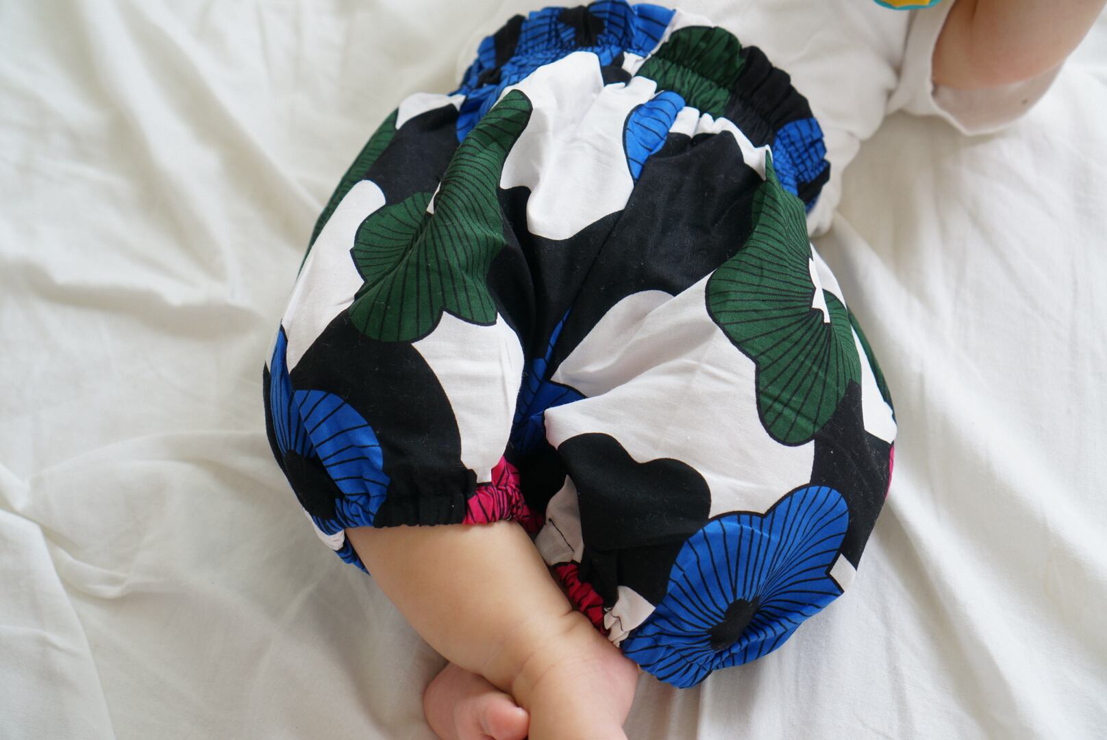 poaにベビー服が登場✨ ふんわりお尻がかわいいカボチャパンツ ※別売でママ用のスカートもあります❤️ (モデル: 6ヶ月 70cm着用)